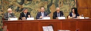 De izquierda a derecha, Jesús Delgado, Julio Embid, Javier López, Javier Hernández y Carmen Bayod.